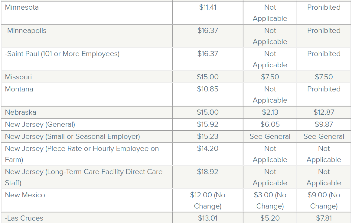 In New Mexico, the City of Santa Fe and Santa Fe County will adjust their minimum wage rates based on inflation effective March 1, 2026.
