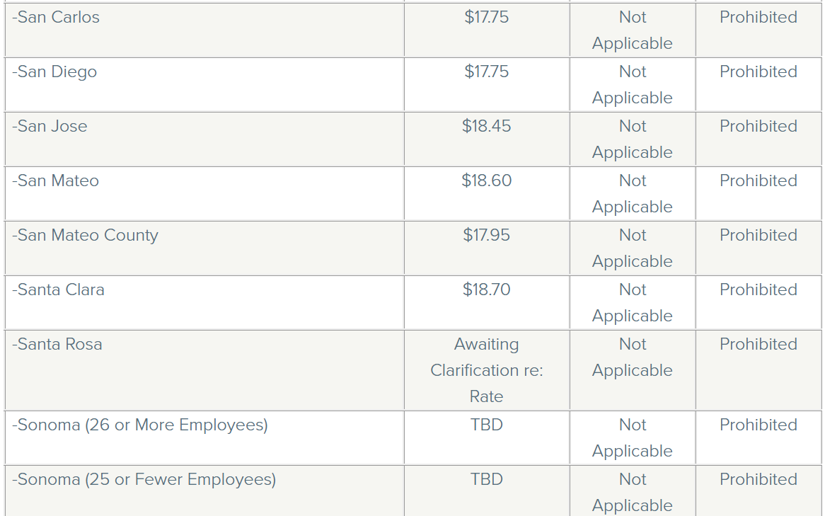 Some local jurisdictions are slower than others when it comes to announcing their adjusted rates, or the inflation-related data they use is not published until later during the year, so at the time of publication readers will see a handful of “TBD” notations that we will update once the jurisdiction officially makes their announcement.