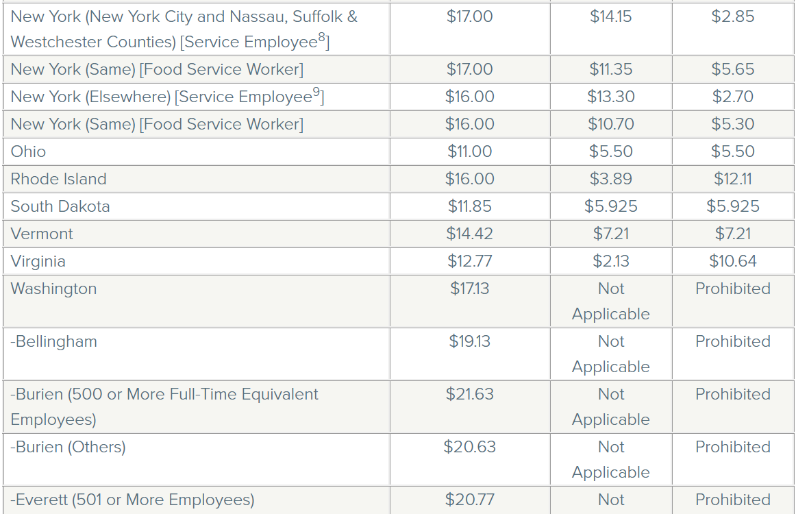In certain jurisdictions employers may be able to count tips an employee receives toward the minimum wage. In those jurisdictions that permit a tip credit, if the direct wage an employer pays (minimum cash wage) and tips an employee earns equals the minimum wage, an employer satisfies its minimum wage obligation, but, if the direct wage plus tips does not equal the minimum wage, an employer must pay the employee the difference.