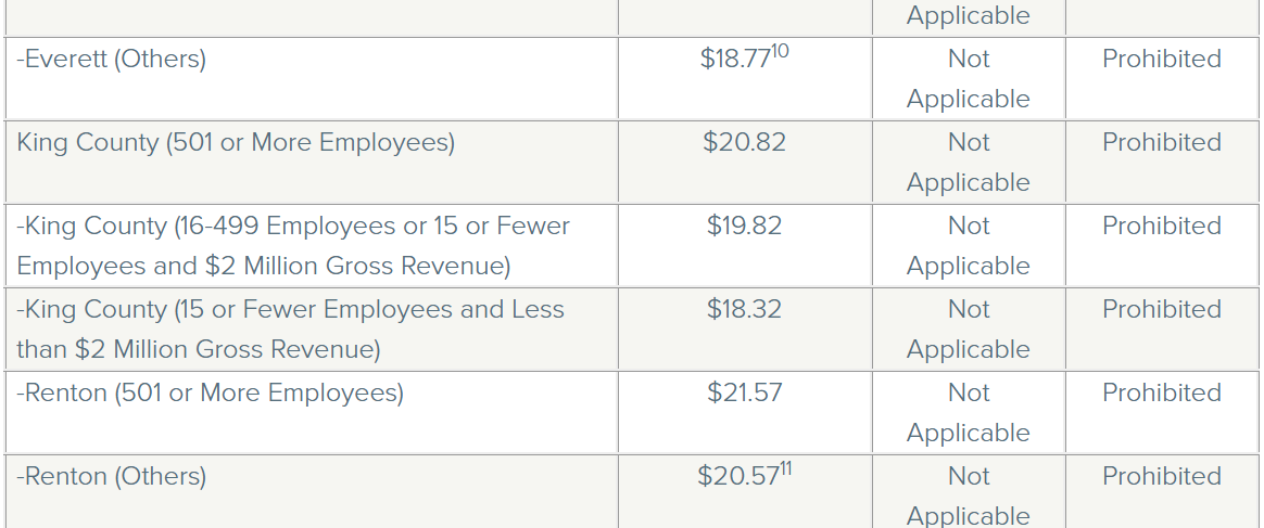 Among other changes, Saint Paul, Minnesota revised its future rate schedule. As amended, the rate applicable to “small” businesses with 100 or fewer employees from July 2026 through June 2027 will be the 2026 “large” business rate (see further below), and from July 2027 through June 2028 it will be the eventual 2027 large business rate. The rate applicable to “micro” businesses with five or fewer employees will retain its previously preset July 1 increases of $14.25 (2026) and $15 (2027), but, as amended, from July 2028 through June 2029 such businesses must pay the eventual 2028 large employer rate, and from July through December 2029 they must pay the eventual 2029 large employer rate. Beginning on January 1, 2030, one rate will apply to all employers.